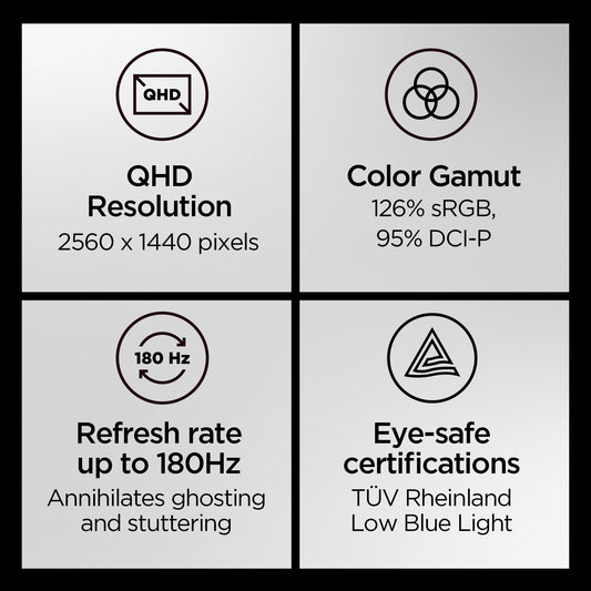Lenovo Legion Y27q-30 Monitor - 2025 - Gaming Monitor - 27" QHD IPS Display - Overclocked 180z Artery Software - AMD FreeSync™ Premium - 0.5ms MPRT - Raven Black NearEdgeless Design